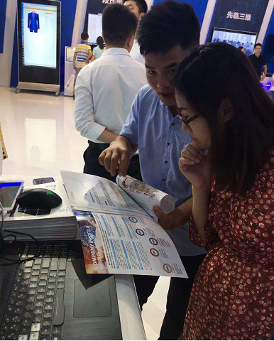 观众在智博会现场体验服装行业的“一分钟换装技术”